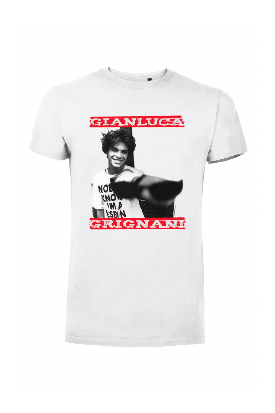 T-shirt bianca Stampata fronte Gianluca Grignani Foto 1995 100% cotone organico - girocollo con vestibilità classica, sensazione morbida al tatto per un comfort fenomenale. Superficie liscia e jersey ad alta densità.