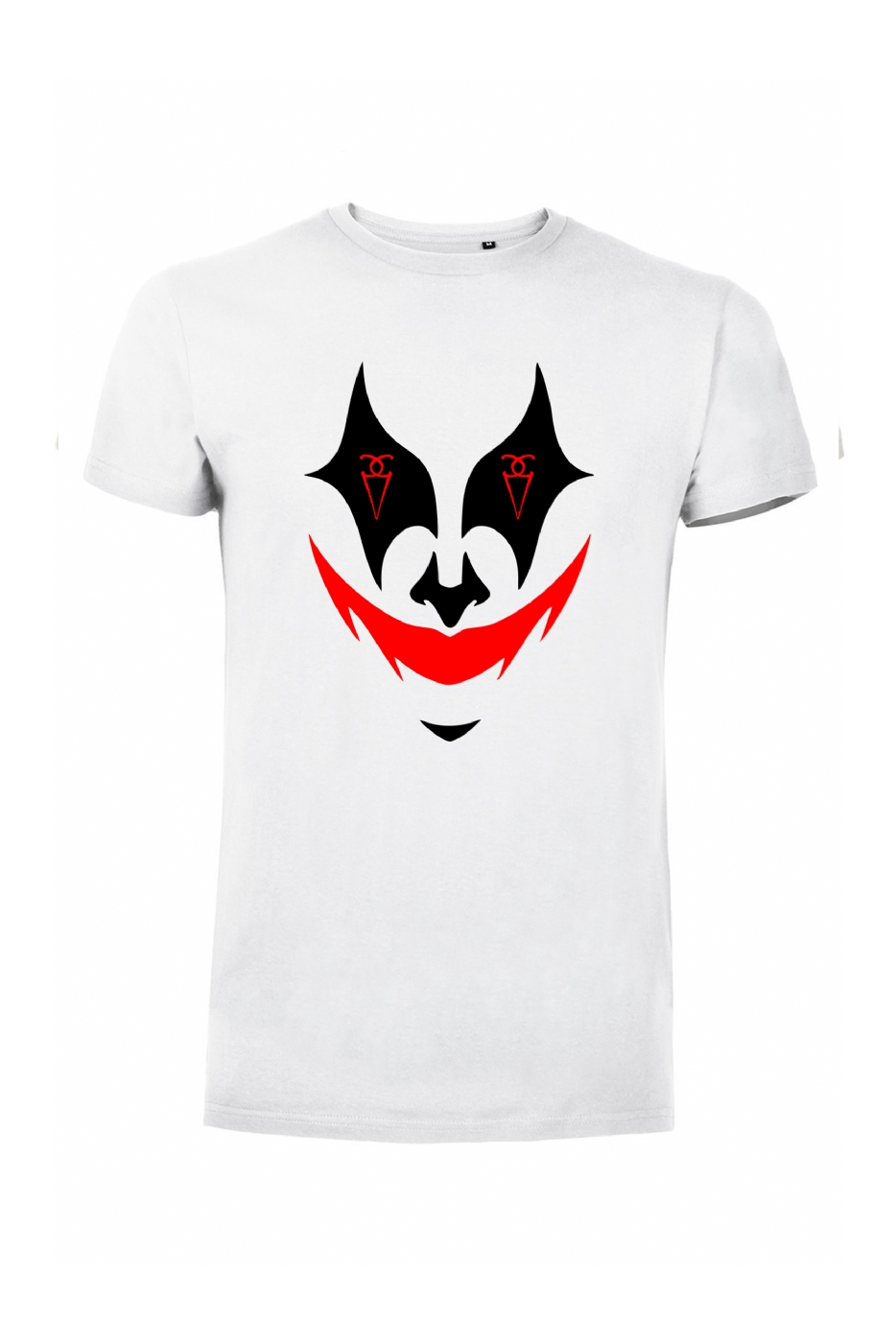 T-shirt bianca Stampata fronte Gianluca Grignani Joker stilizzato 100% cotone organico - girocollo con vestibilità classica, sensazione morbida al tatto per un comfort fenomenale. Superficie liscia e jersey ad alta densità.