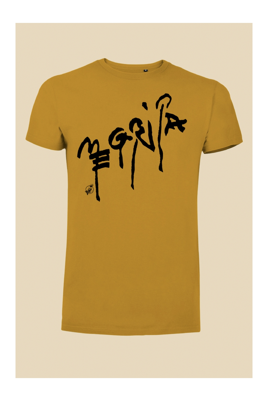 T-shirt 100% cotone organico in conversion, colore senape, manica corta realizzata in cotone ecosostenibile, vestibilità moderna, realizzata in morbido cotone pettinato